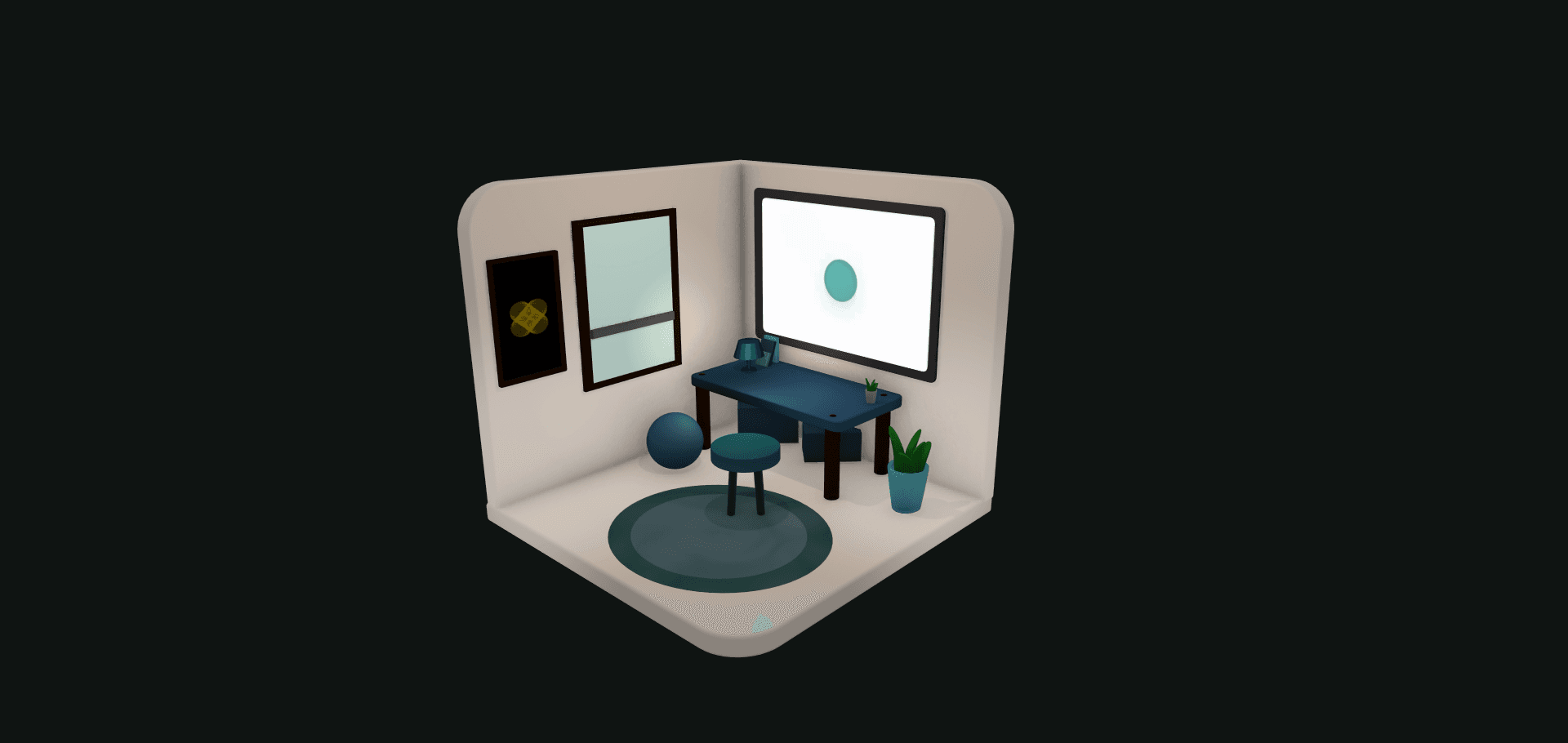 To contextualize the interface, it was placed within a small three-dimensional environment resembling a quiet interior room.